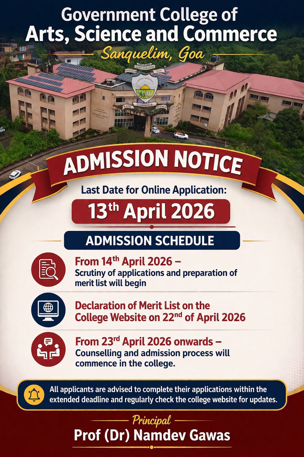 -A A +A A A Select LanguageEnglishMarathiKonkani UG Admission 2026-27 Date extended UG Admission 2026-2027 Flyer